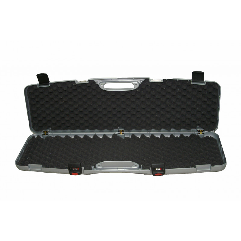 Maletín de polipropileno de color gris para rifle. Con 4 cierres, 2 de combinación e interior espuma.