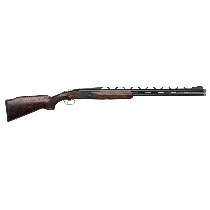 Calibre 12, recámara 76 mm, longitud standard del cañón 76 cm. (otras medidas sin cargo: 71/81 cm.). Sistema x-cones, cono de conexión suave para la reducción de retroceso. Disponible cañón perforado.