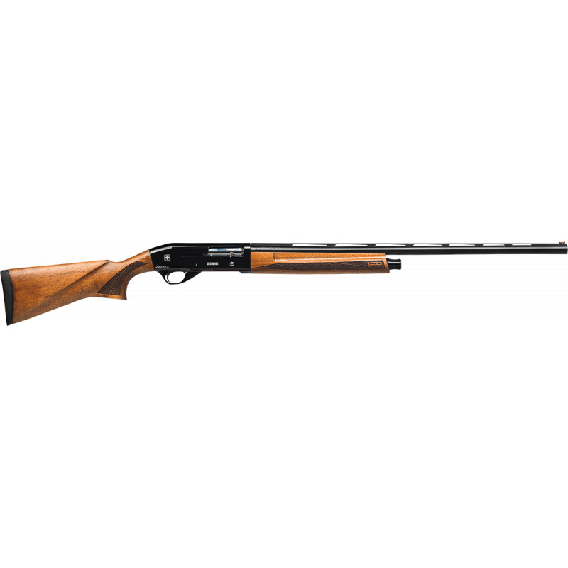 La escopeta semiautomática ATA NEO Black presenta un acabado clásico en pavón negro con culata y guardamanos de madera de nogal turco acabado al aceite.
