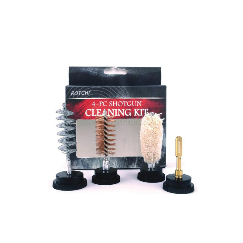 kit limpieza para escopeta de Rotchi que incluye grata de bronce, mopa de algodón, grata tipo muelle y agarre.
