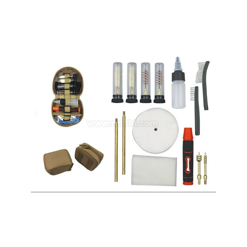 Kit limpieza para pistola con bolsa negra Rotchi que incluye 2 cables, 2 gratas de bronce, 2 mopas de algodón, 2 puntas de latón, 1 agarre, 2 gratas utilitarias, 2 varillas, 1 agarre multi-funcional, 1 botella de aceite vacía, 1 bolsa para piezas y una bolsa redonda.