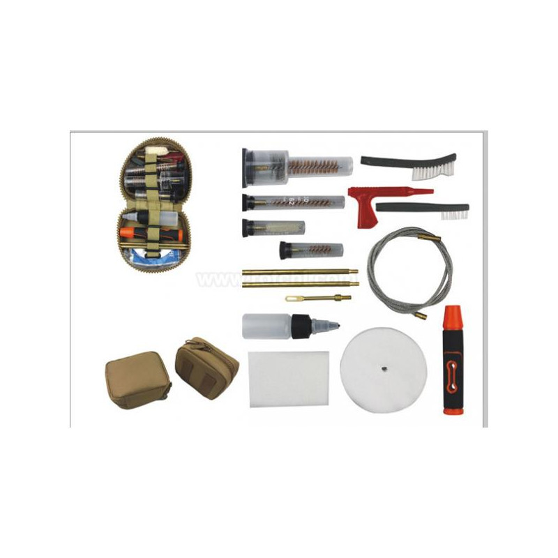 | Características | 1 set de gratas y mopa para pistola + 1 grata y mopa para rifle + 1 grata para recamara + 2 varillas, patch holder + cable con conector + bote de aceite vacío + seguro + square patches + agarre multi-funcional + bolsa redonda |