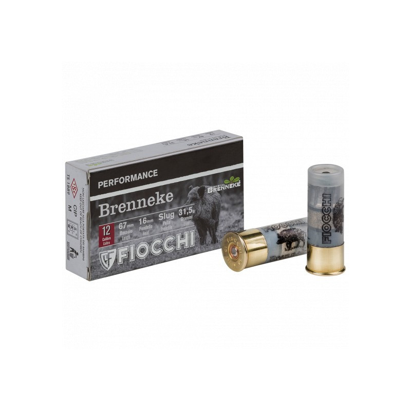 Cartucho Fiocchi BRENNEKE con carga de 12 gramos y calibre 12/67/16. Perdigón Palla Slug