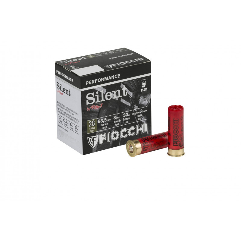 Cartucho Fiocchi SILENT CAL. 28 con carga de 33 gramos y calibre 28/63,5/8. Perdigón 9#11 níquel.