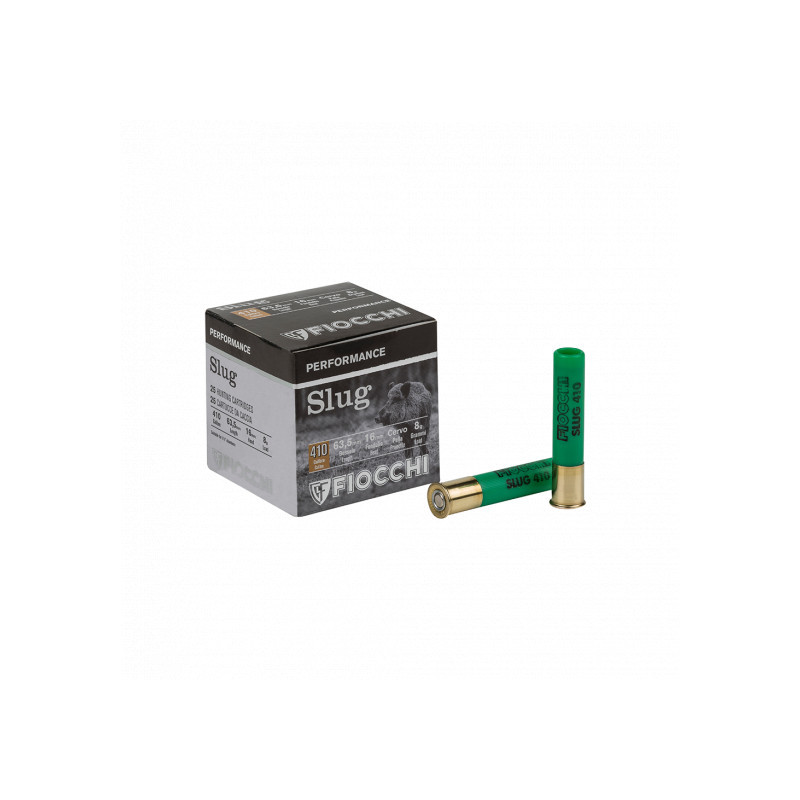 Cartucho Fiocchi SLUG CAL.410 con carga de 36 gramos y calibre 36/63,5/16. Perdigón Palla Cervo