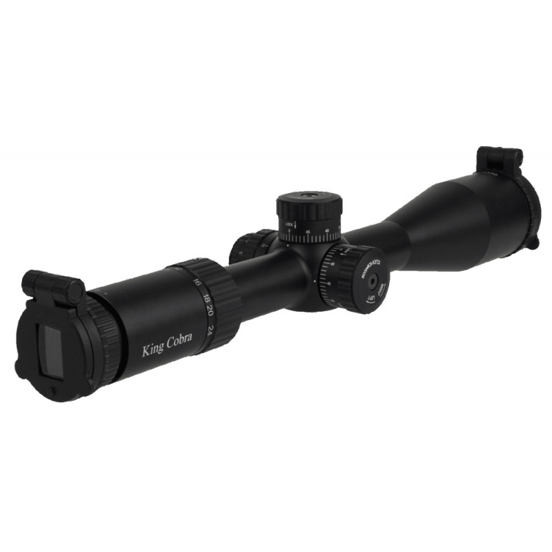 El visor King Cobra ofrece ajustes de clic en MIL (1 clic = 1 cm a 100 m), cuenta con la retícula de multipuntos para tiro SCB2 de MTC, que proporciona numerosos puntos de puntería para contrarrestar la trayectoria y la desviación del viento. La retícula en su parte central se puede iluminar en rojo con hasta seis niveles de brillo para adaptarse a cualquier circunstancia. Para maximizar la transmisión de luz y mantener una imagen de brillante, el tubo de 30 mm de King Cobra se ha combinado con una lente de objetivo de 50 mm que ha sido especialmente recubierta. Se garantiza una imagen nítida gracias a un ocular de enfoque rápido y un corrector lateral para marcar el error de paralaje; desde el infinito hasta los 15 metros. El ajuste de paralaje también funciona como un práctico telémetro cuando se usa junto con los ajustes de aumento más elevados.